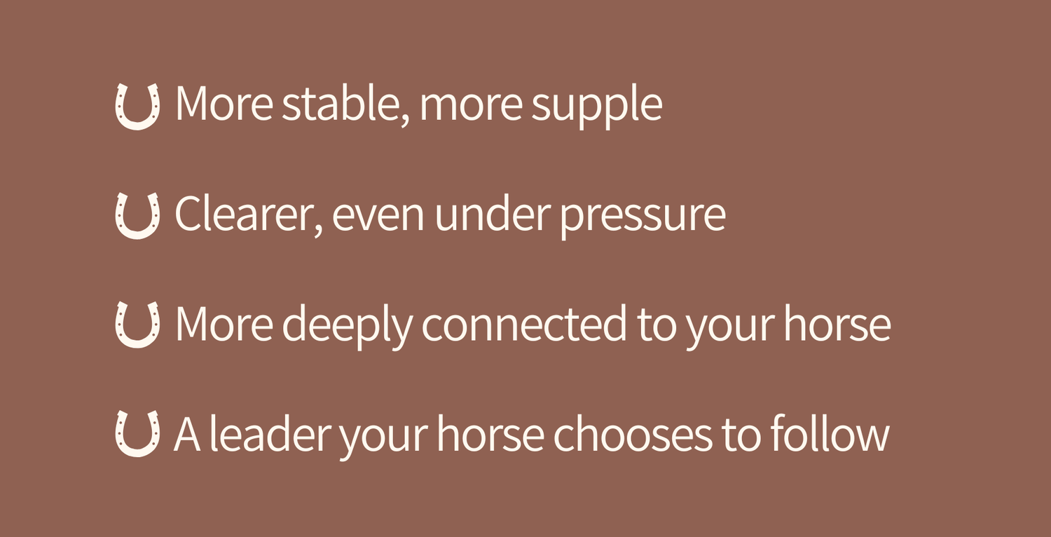 It doesn’t replace technique — it enhances it from within, helping you develop presence, clarity, and balance in the stable, in training, and in competition.